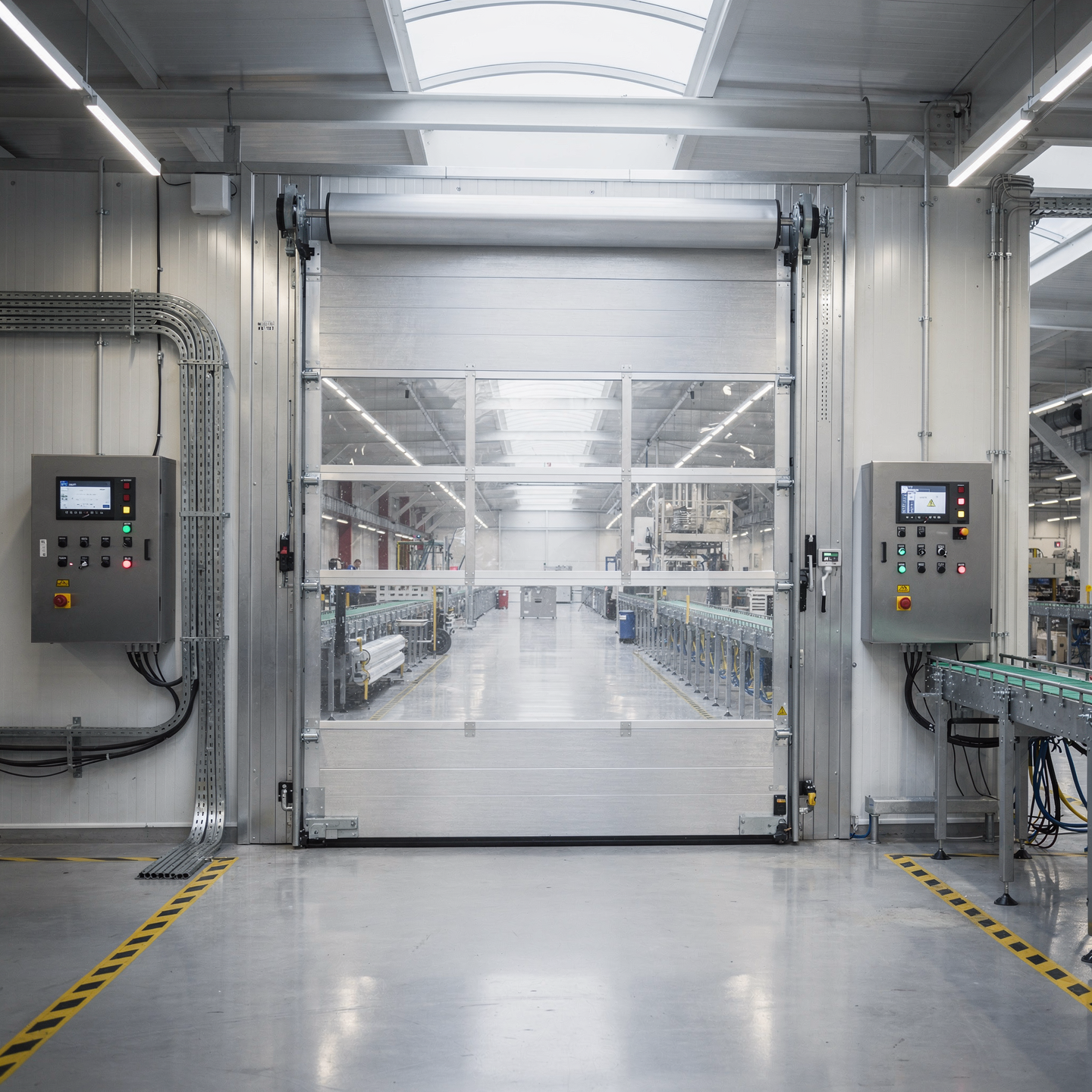 應用於工廠內部區域隔離與動線管理,溫度監控功能確保設備在適當環境下運作,降低故障風險。